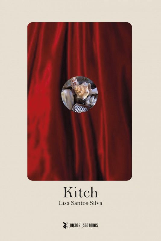 • Capa de livro 'Kitch' com imagem central redonda e fundo vermelho