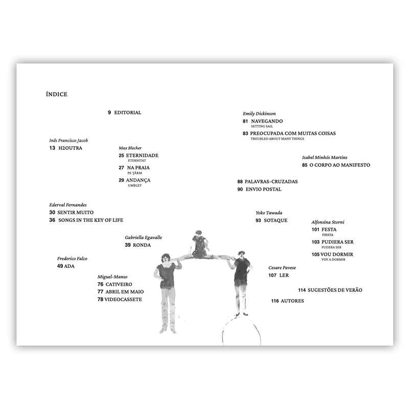 Limoeiro Real / 1 12,00 € Desconto de %. IVA incluído. Partilhar O produto encontra-se sem stock. LIMOEIRO REAL volume 1Revista literária independente, dedicada à ficção, poesia, ensaio e ilustração. Capa a partir de desenho de Bina Tangerina. Autores: Max Blecher, Emily Dickinson, Gabriella Egavalle, Federico Falco, Ederval Fernandes, Inês Francisco Jacob, Miguel-Manso, Isabel Minhós Martins, Cesare Pavese, Yoko Tawada, Alfonsina Storni. Junho 2022120 páginas Tags limoeiro realrevistasPoesiaFicçãomax blecheremily dickinsonmiguel-mansoyoko tawadainês francisco jacob Características