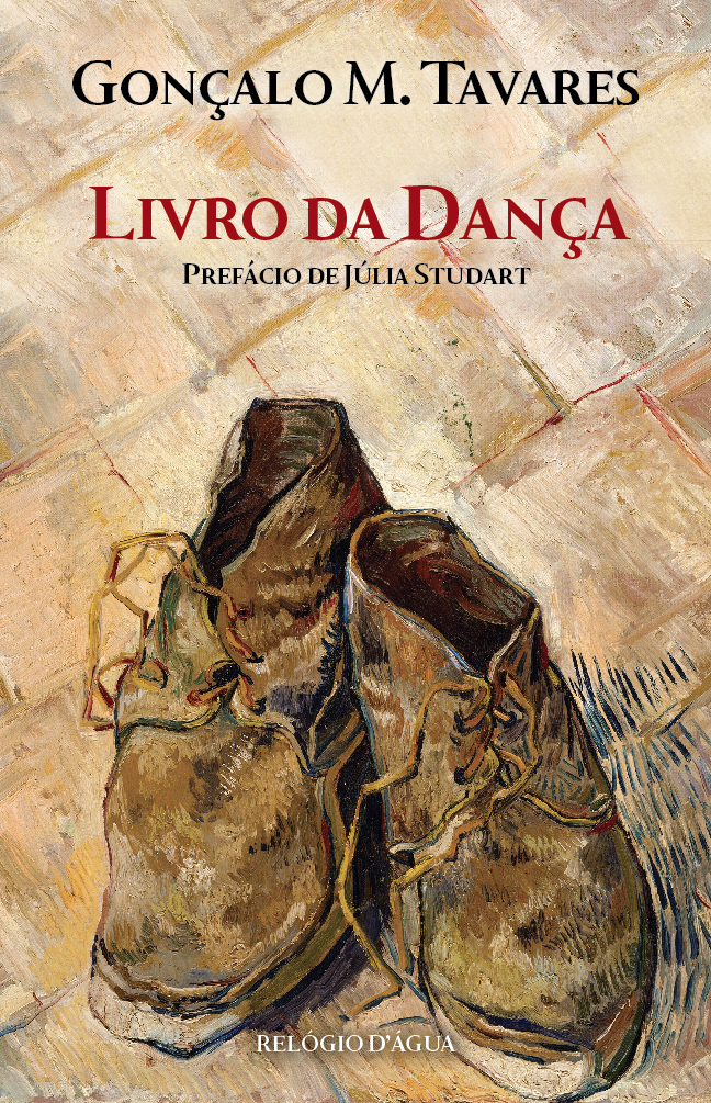 Capa do livro 'Livro da Dança' de Gonçalo M. Tavares com ilustração de botas castanhas sobre azulejos claros.