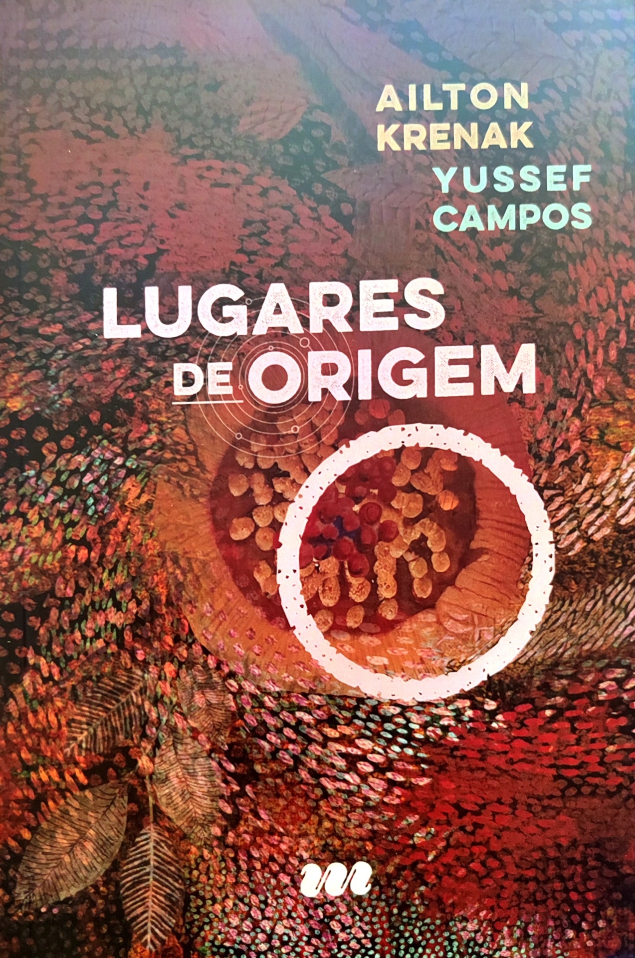 • Capa de livro com título 'LUGARES DE ORIGEM' e nomes dos autores em fundo colorido abstrato