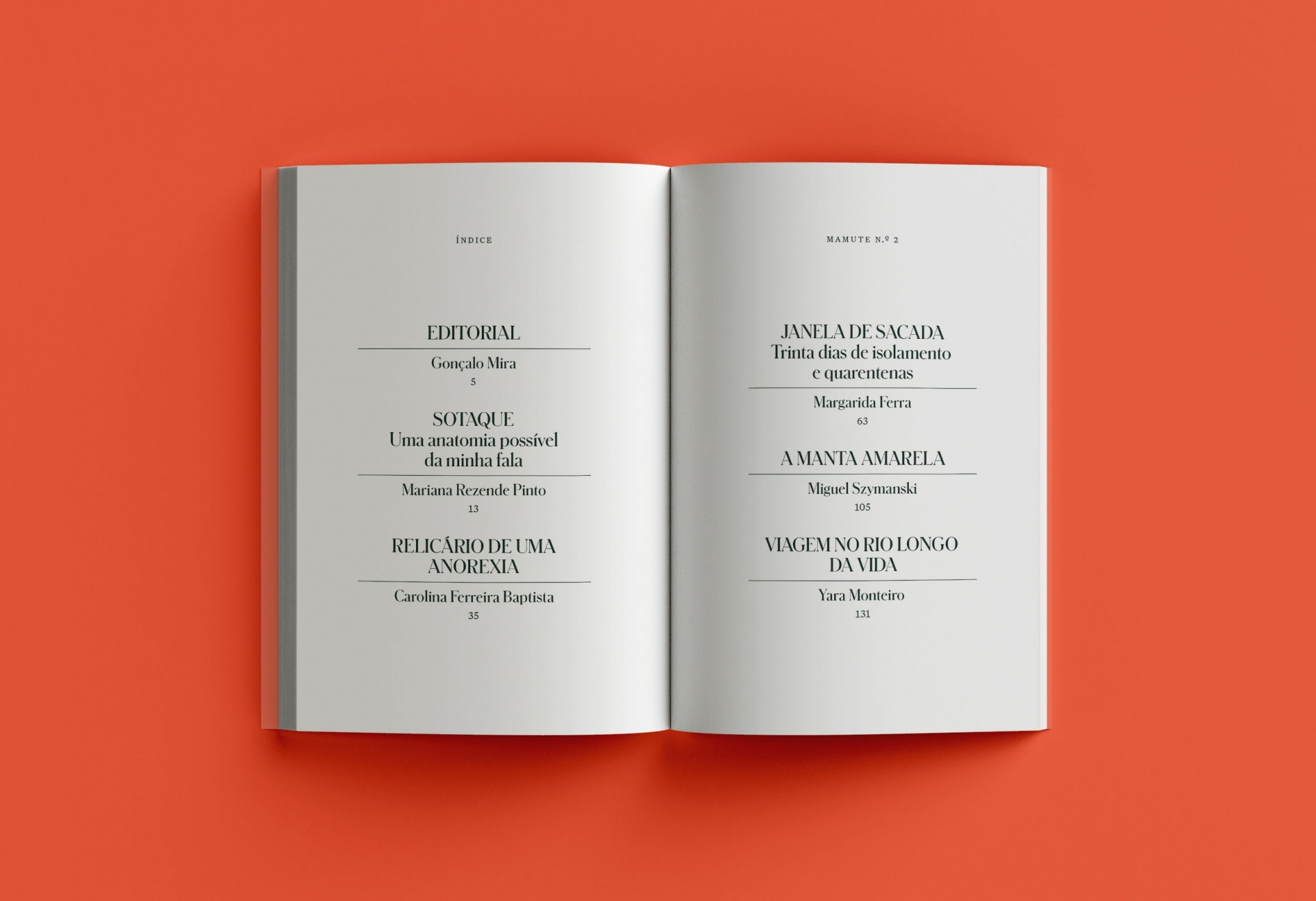 A Mamute é uma revista de ensaios criativos e pessoais em formato longo. Será sempre esse o fio condutor a ligar textos tão diferentes entre si. No segundo número, fala-se de sotaques e como eles influenciam a ideia que os outros fazem de nós; aborda-se a anorexia de modo desafiante e provocador; relata-se como é passar um mês fechada em casa, com Covid, e três filhos por companhia; conta-se a história de muitas emigrações e uma identidade dividida entre Alemanha e Portugal; e termina-se com uma experiência de ancestralidade no seio de uma tribo amazónica. Cinco novos testemunhos em busca da curiosidade e empatia dos leitores.