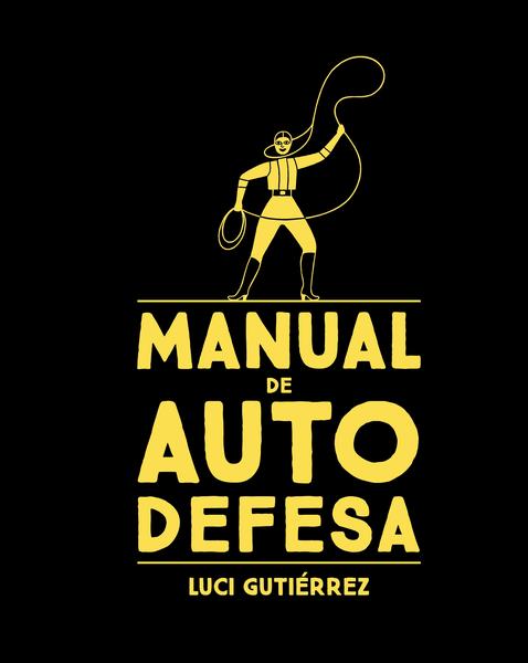 Capa de livro preta com figura amarela e texto 'MANUAL DE AUTO DEFESA LUCI GUTIÉRREZ'