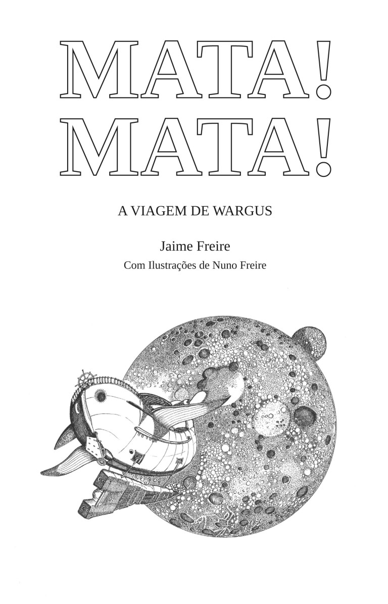 • Capa de livro 'MATA! MATA! A VIAGEM DE WARGUS' com ilustração de nave espacial e planeta.