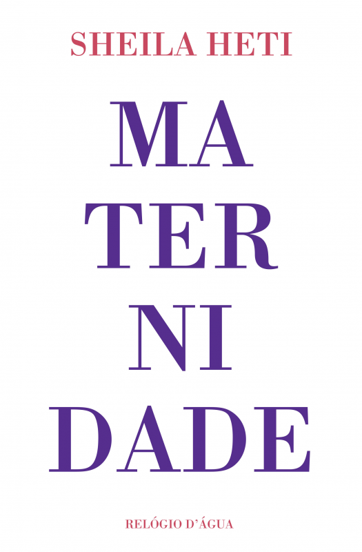 Capa de livro branco com título MATERNIDADE em roxo e autor Sheila Heti em vermelho