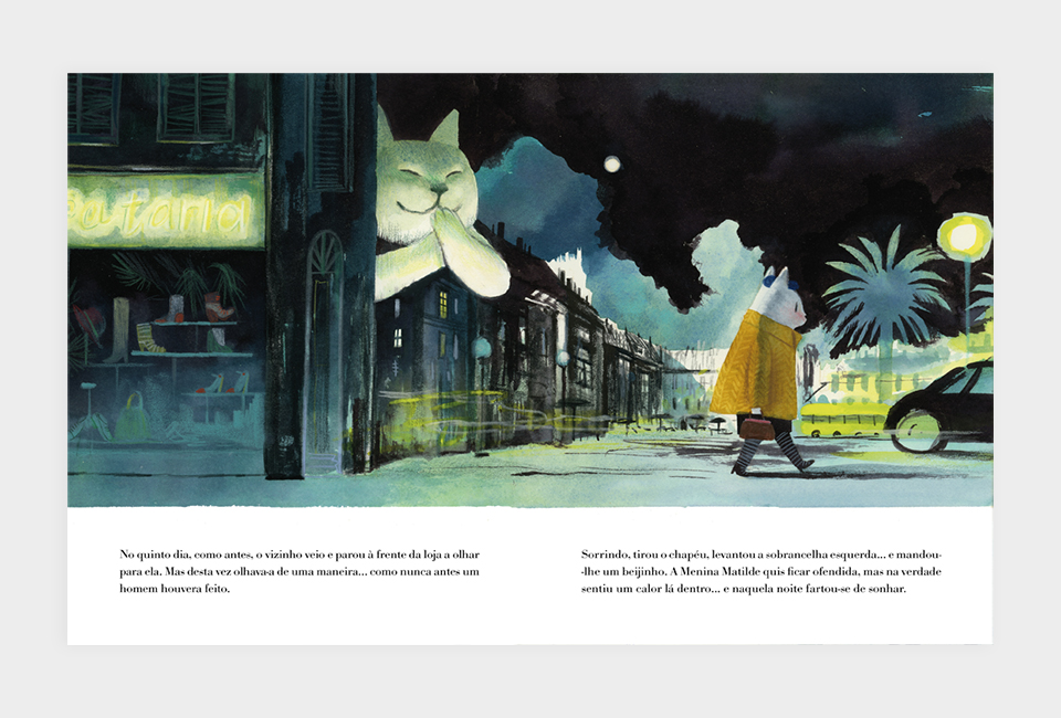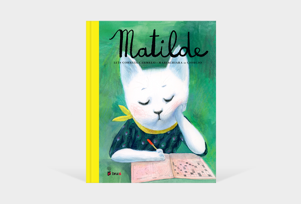 • Capa de livro intitulado Matilde com ilustração de coelho branco a escrever numa folha.