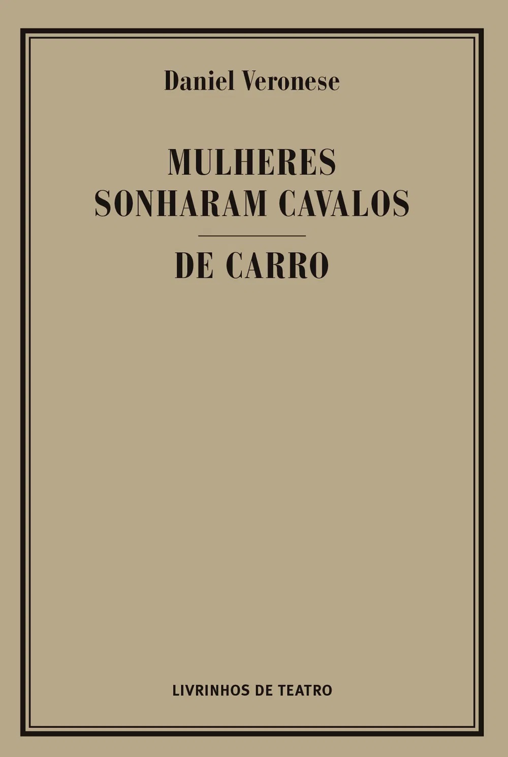 Capa de livro bege com texto preto 'Daniel Veronese Mulheres Sonharam Cavalos De Carro'