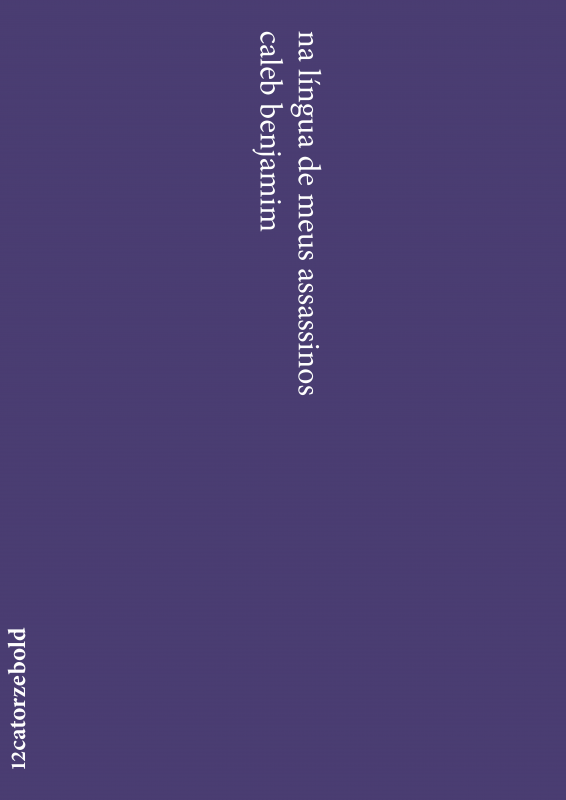 • Capa roxa de livro com texto branco vertical e horizontal