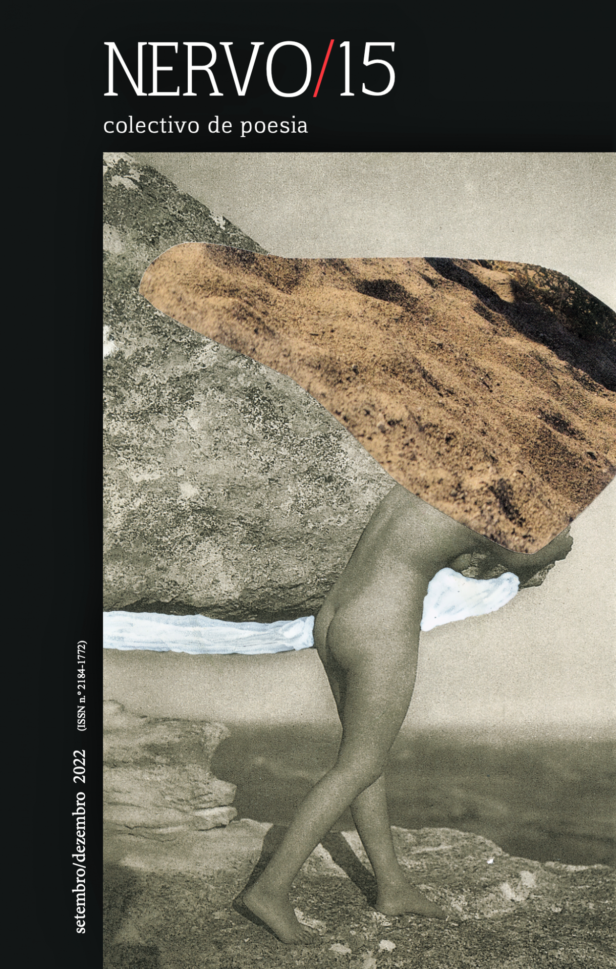 • Capa da revista NERVO/15 com figura humana sob sombra castanha e fundo rochoso