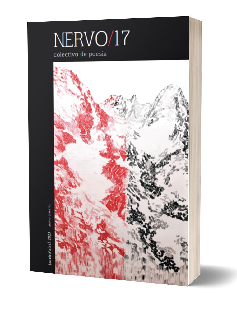 Capa de livro NERVO/17 colectivo de poesia com ilustração de montanhas nevadas em vermelho e preto
