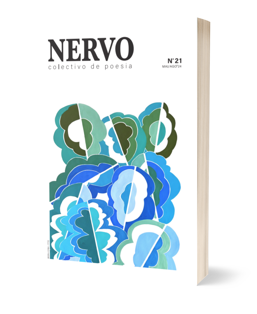 • Capa de livro NERVO coletivo de poesia com padrão floral em tons de azul e verde