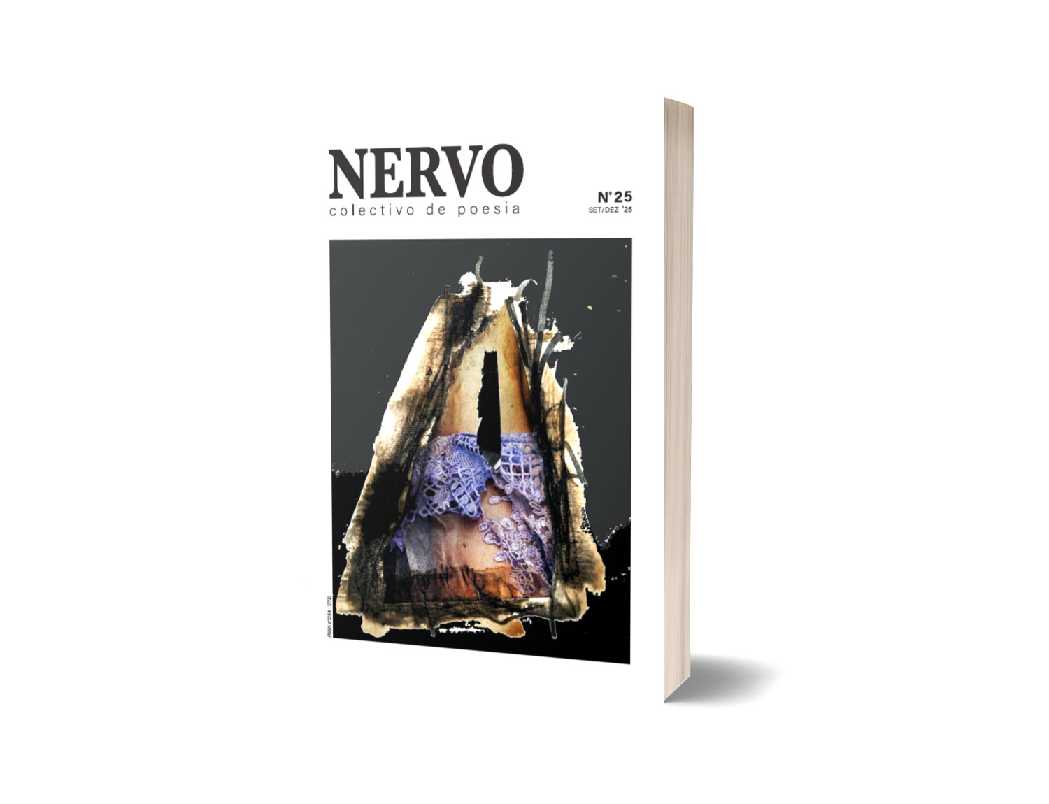 • Capa de livro 'NERVO colectivo de poesía' com ilustração abstrata em tons castanhos e lilás