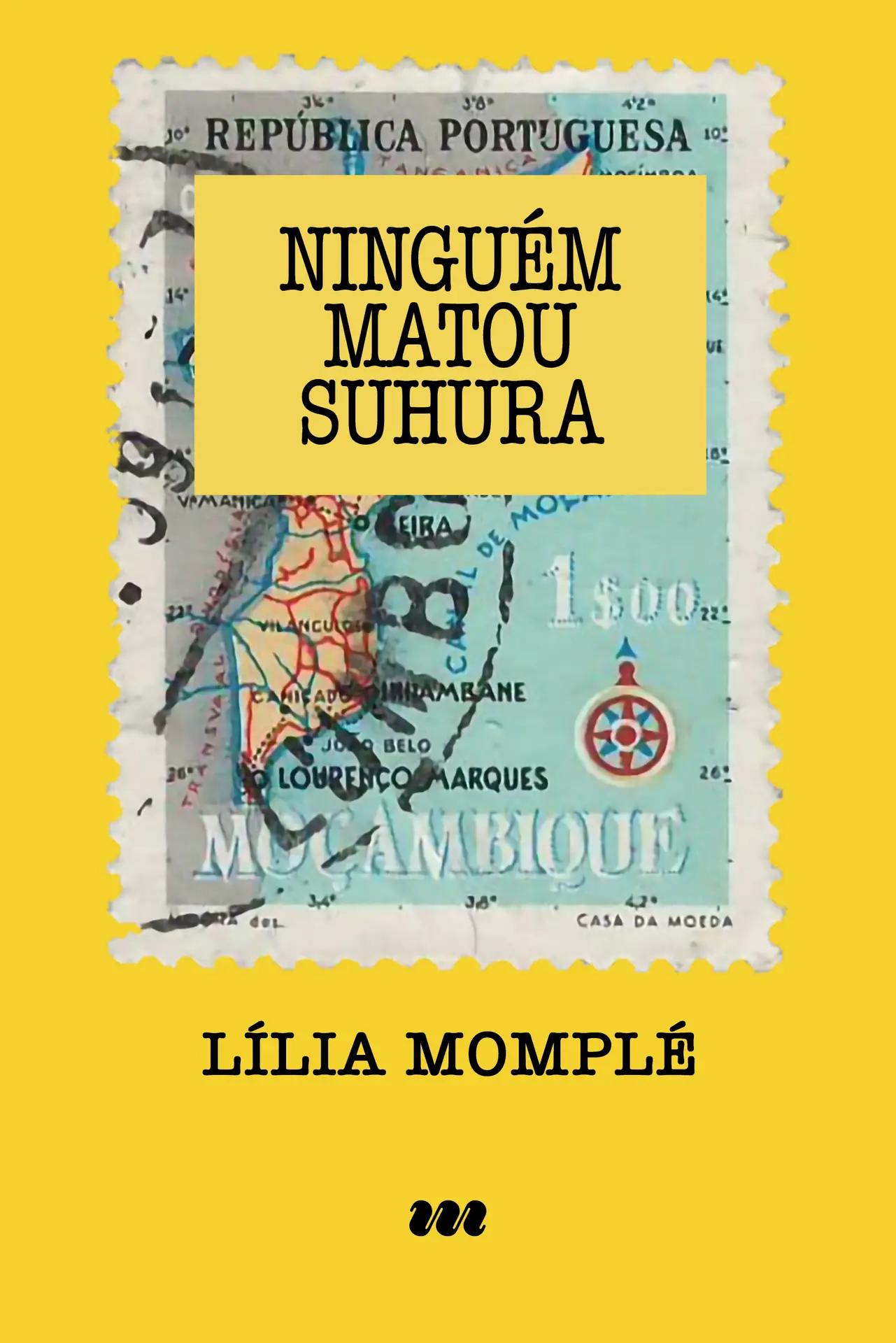 • Capa de livro amarela com selo postal de Moçambique e texto NINGUÉM MATOU SUHURA