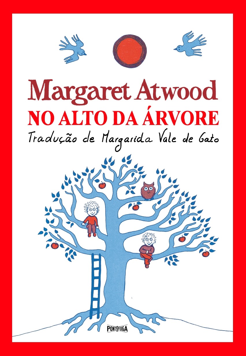 • Capa de livro NO ALTO DA ÁRVORE de Margaret Atwood com ilustração de árvore e crianças