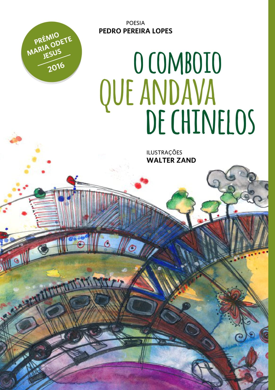 • Capa do livro O Comboio Que Andava De Chinelos com ilustrações coloridas e texto em verde.