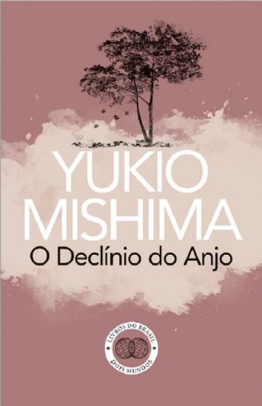 • Capa de livro rosa com título YUKIO MISHIMA O Declínio do Anjo e árvore preta