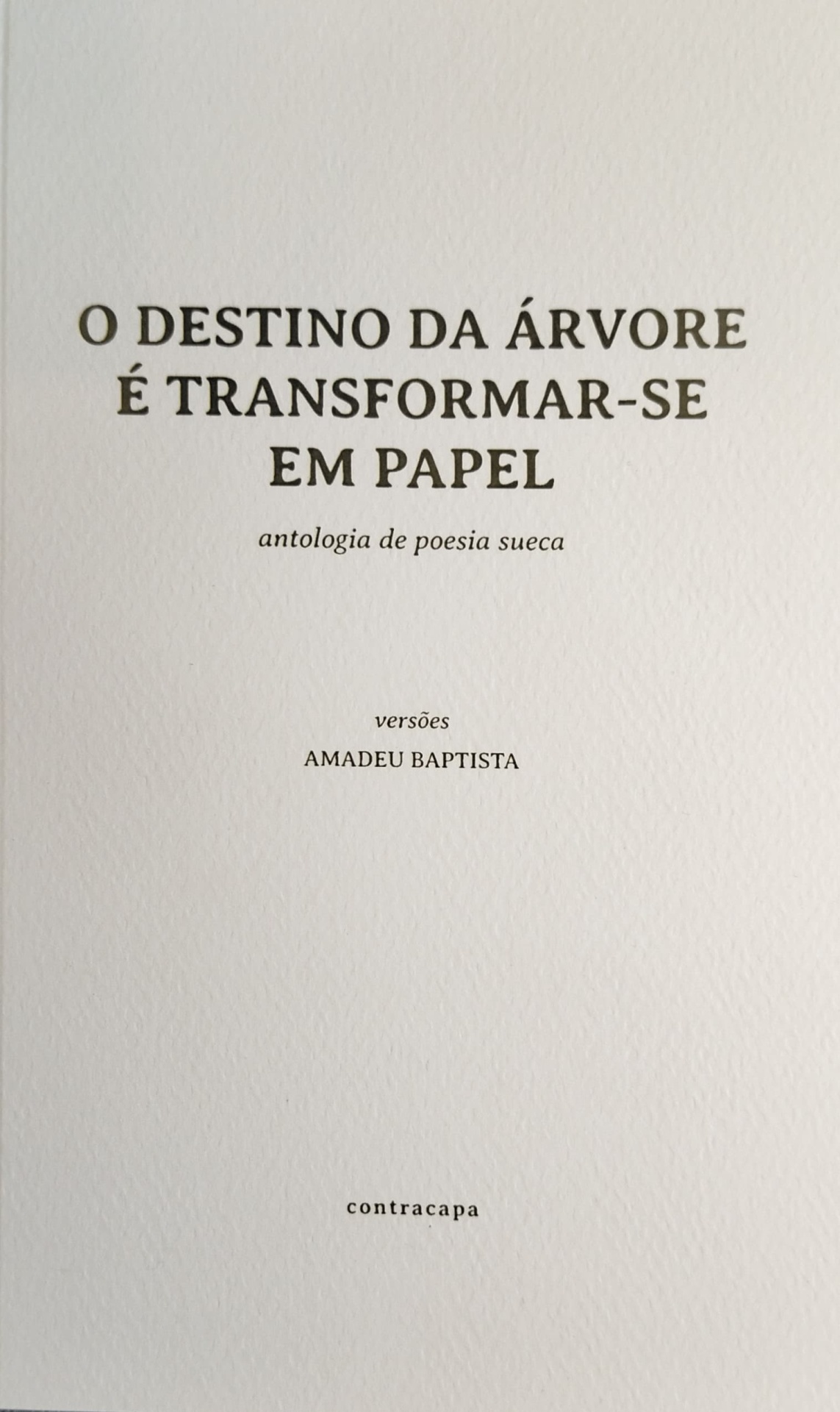 O Destino da Árvore é Transformar-se em Papel 8,00 € Desconto de %. IVA incluído. Partilhar Comprar Contactar O Destino da Árvore é Transformar-se em Papel(antologia de poesia sueca)versões de Amadeu Baptista Edições Contracapa, Abril 2021212 pp. Tags ContracapaAntologiaspoesia traduzida2021