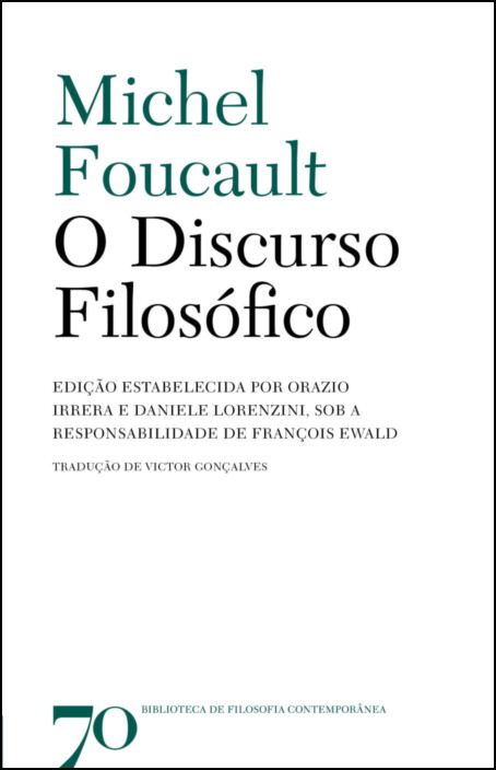 Capa do livro 'O Discurso Filosófico' de Michel Foucault com texto verde e preto sobre fundo branco