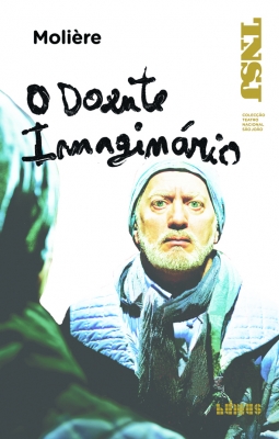 Capa de livro 'O Doente Imaginário' com imagem de homem de gorro e cachecol