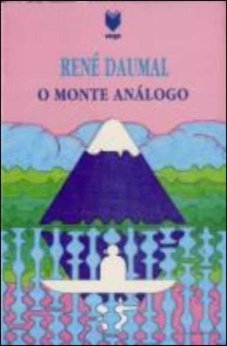 • Capa de livro com título O MONTE ANÁLOGO e ilustração de montanha estilizada