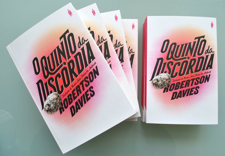 Livros O QUINTO DA DISCORDIA de ROBERTSON DAVIES com capa branca e detalhe rosa