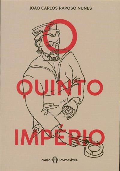 Capa de livro 'O QUINTO IMPÉRIO' com ilustração de homem desenhado a traço preto
