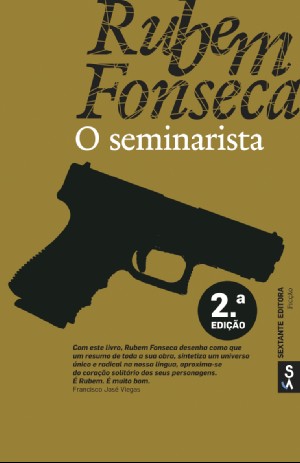 • Capa do livro O seminarista de Rubem Fonseca com imagem de pistola preta.