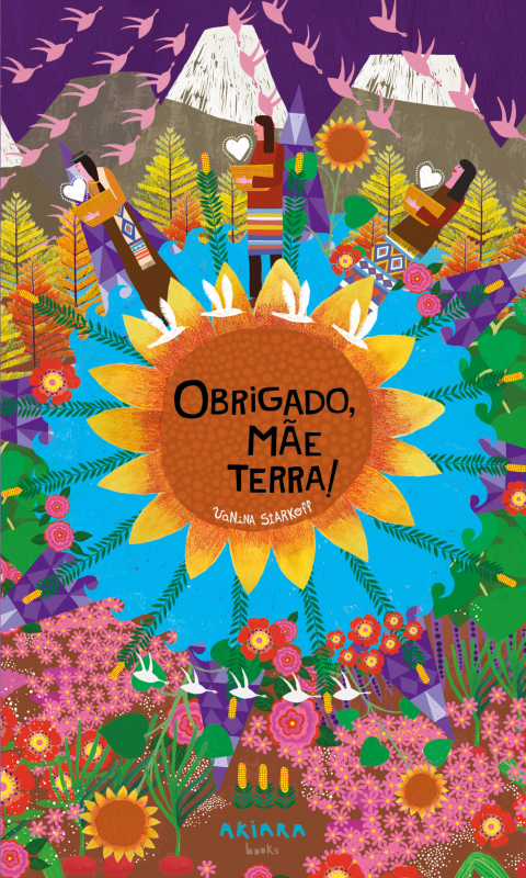 Ilustração colorida com girassol e texto obrigado Mãe Terra