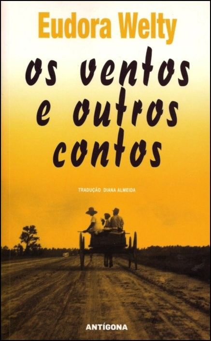 • Capa de livro 'os ventos e outros contos' de Eudora Welty com imagem de duas pessoas numa carroça numa estrada
