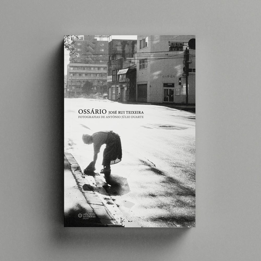 • Capa do livro OSSÁRIO de José Rui Teixeira em preto e branco com foto urbana