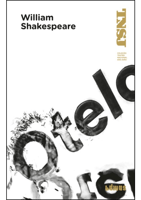 • Capa do livro Otelo de William Shakespeare, com design minimalista em branco, preto e dourado