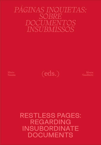 Páginas Inquietas: sobre documentos insubmissos 25,00 € Desconto de %. IVA incluído. Partilhar Comprar Contactar Páginas Inquietas: sobre documentos insubmissosRestless Pages: regarding insubordinate documents ed. Mário Moura e Susana Gaudêncio Dois Dias, Dezembro 2019 Textos de Mário Moura; Susana Gaudêncio; Helena Sofia Silva; Ricardo Nicolau; António Guerreiro; Márcia Novais entre outros.