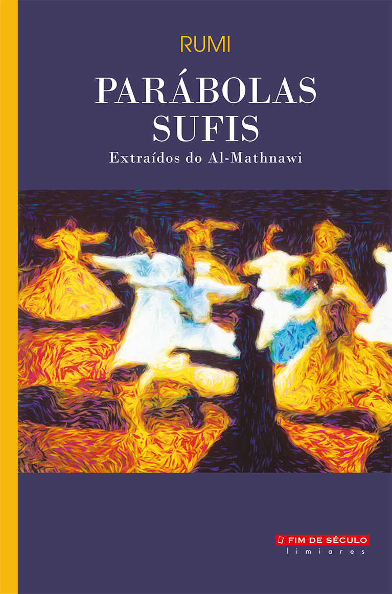 • Capa de livro 'Parábolas Sufis' com ilustração de dançarinos rodopiantes e texto visível.