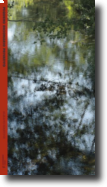 • Reflexão na água de árvores e folhas verdes e castanhas