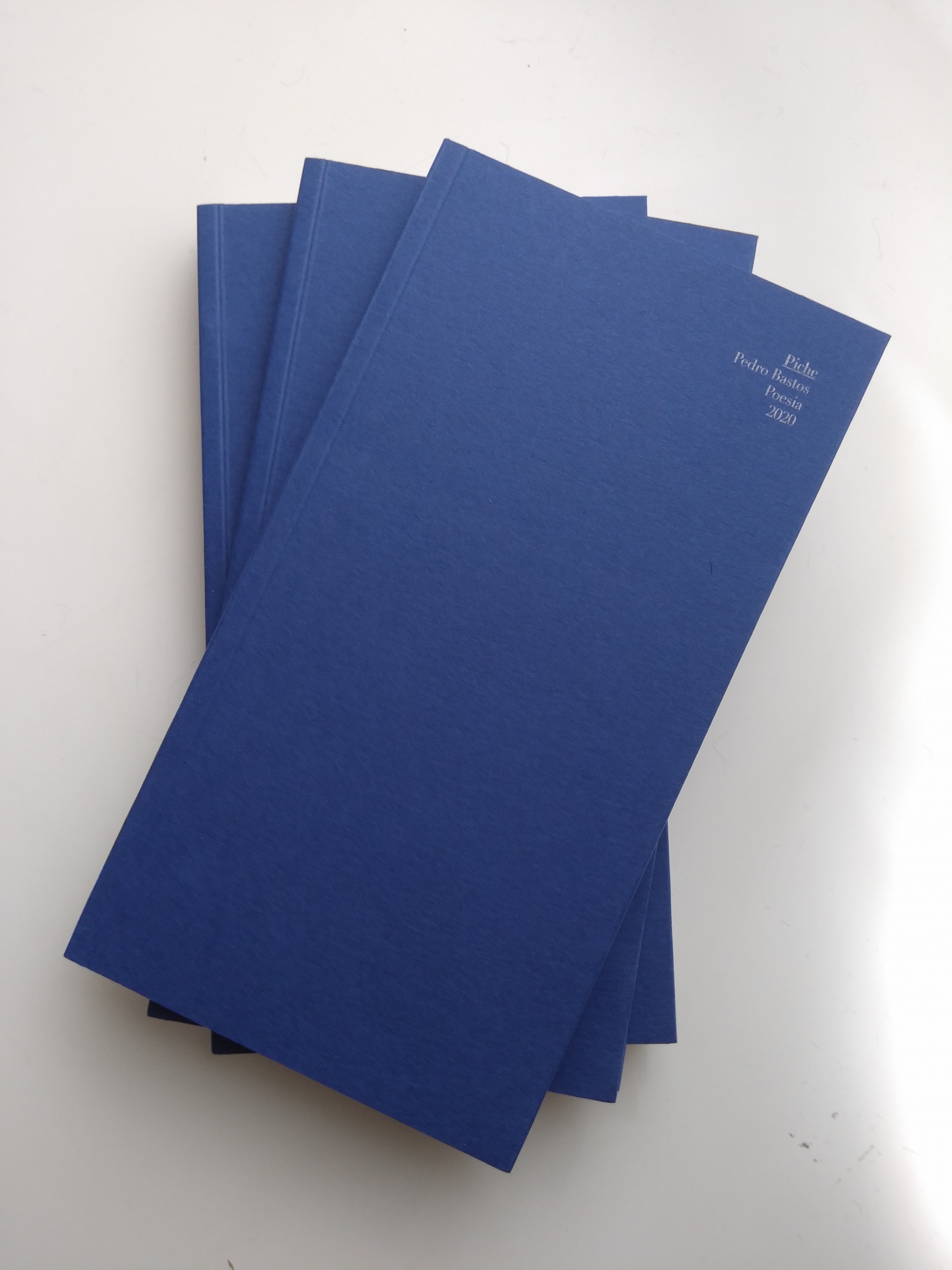 • Conjunto de cadernos azul escuro com texto branco no canto superior direito sobre fundo branco