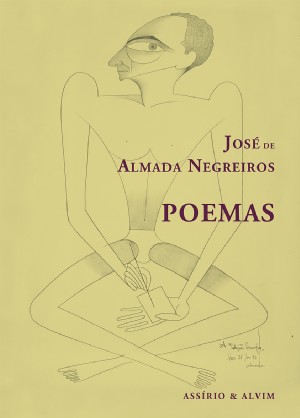 Capa de livro 'Poemas' de José de Almada Negreiros com ilustração de homem desenhado
