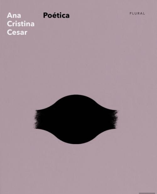 Capa de livro cinza claro com forma preta e texto Ana Cristina Cesar, Poética, PLURAL