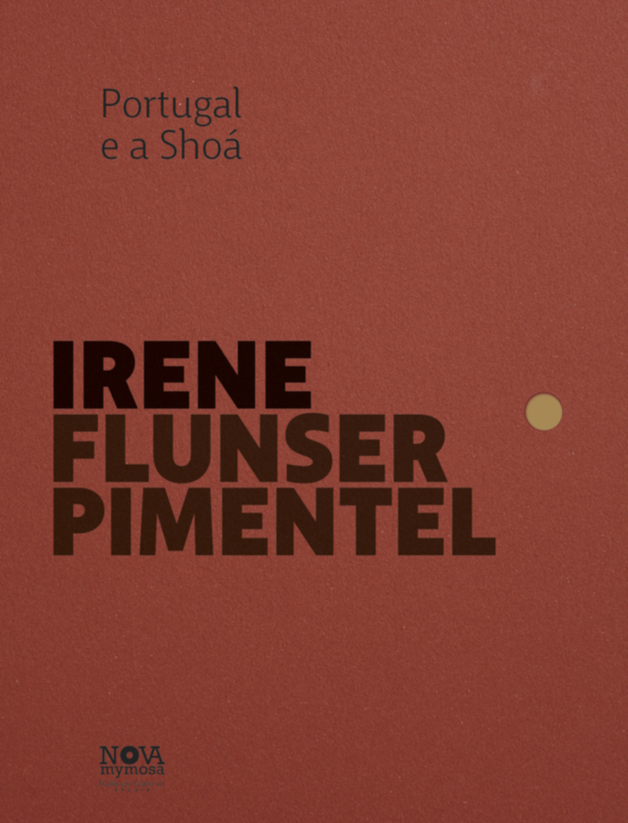 • Capa de livro castanha com texto preto 'Portugal e a Shoá' e nome da autora Irene Flunser Pimentel