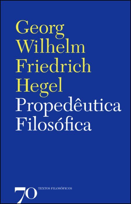 • Capa de livro azul com texto amarelo e branco, titulado Propedêutica Filosófica de Georg Wilhelm Friedrich Hegel.