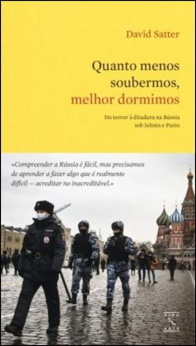 Capa de livro com texto e imagem de polícias na Praça Vermelha em Moscovo