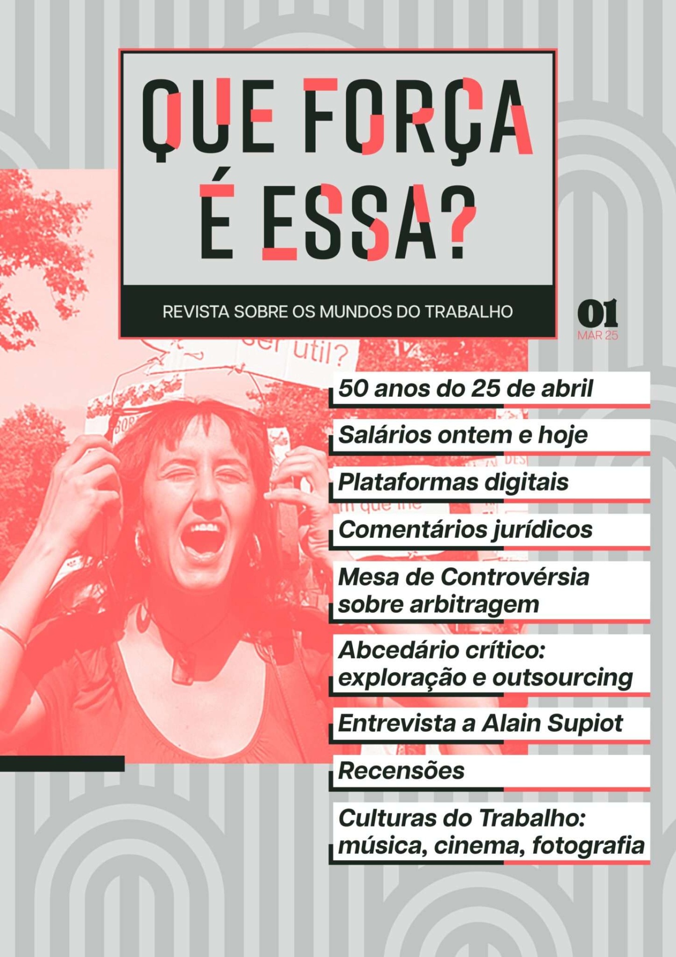 Que Força É Essa? – Revista sobre os mundos do trabalho é uma publicação sobre os mundos do trabalho em sentido amplo. O campo em que a publicação se coloca é a de um pensamento emancipatório, “antropologicamente amigo do trabalho”, comprometido com a democracia e a justiça laborais. A sua urgência é ser lugar de reflexão e debate sobre as transformações em curso nos modos de produzir, de organizar e de gerir o trabalho, bem como sobre alternativas sociais e políticas.