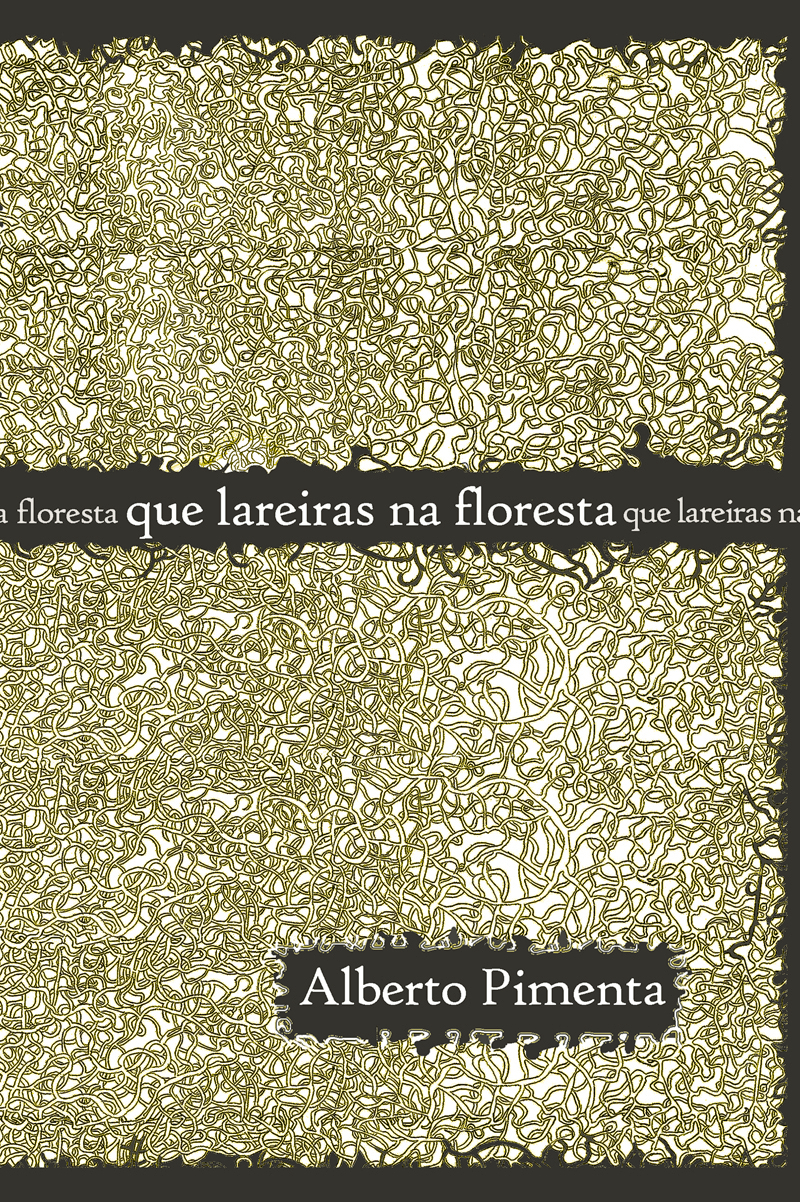 Capa de livro com padrões abstratos dourados e texto em faixas pretas