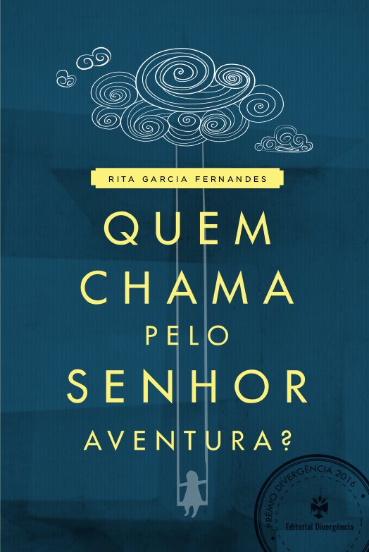 • Capa de livro azul com texto em amarelo e ilustração de nuvens e baloiço