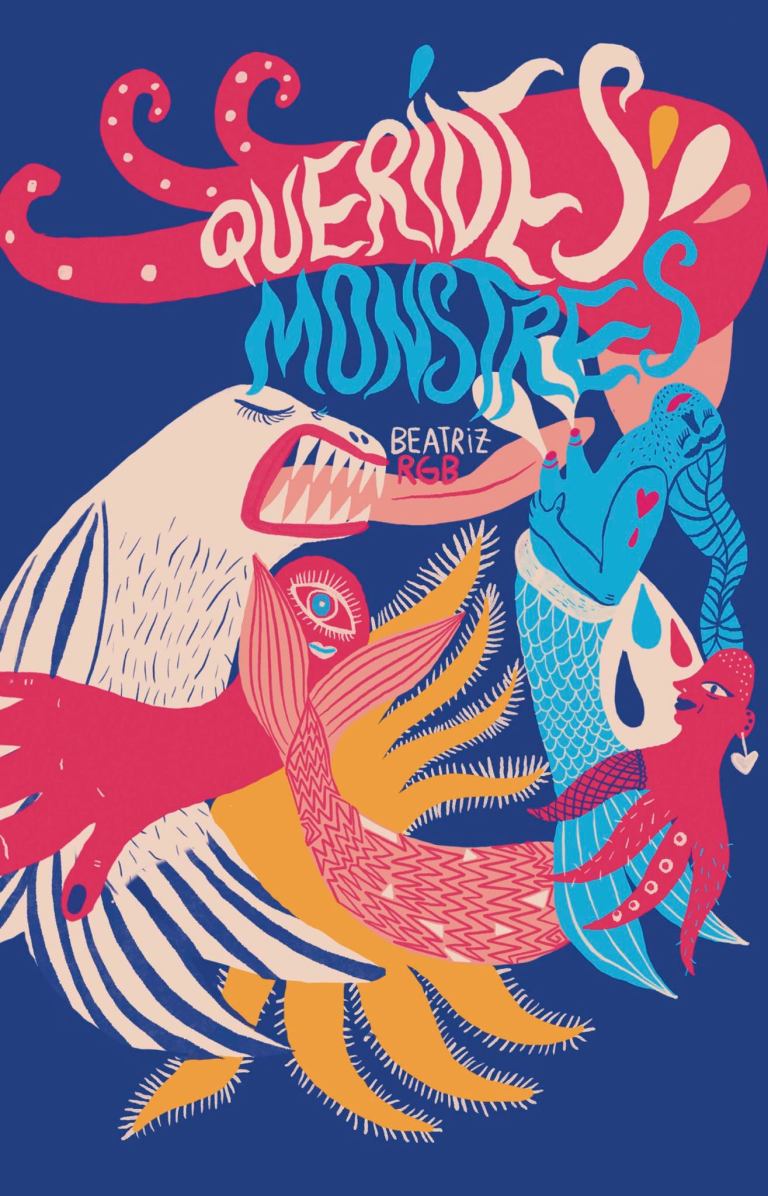 • Ilustração colorida com criaturas estilizadas e texto QUERIDES MONSTRES e BEATRIZ ROB