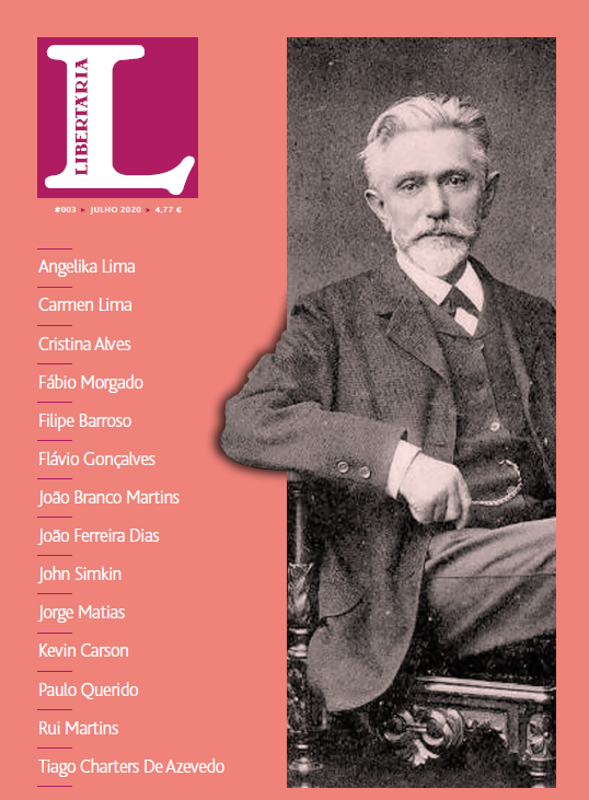 • Capa da revista Libertaria edição julho 2020 com lista de autores e fotografia de homem sentado em preto e branco