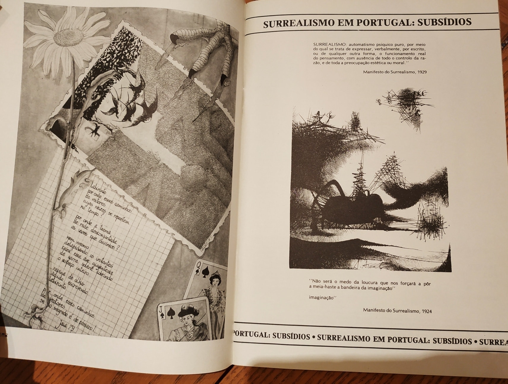 • Páginas de livro com imagens e texto sobre surrealismo em Portugal.