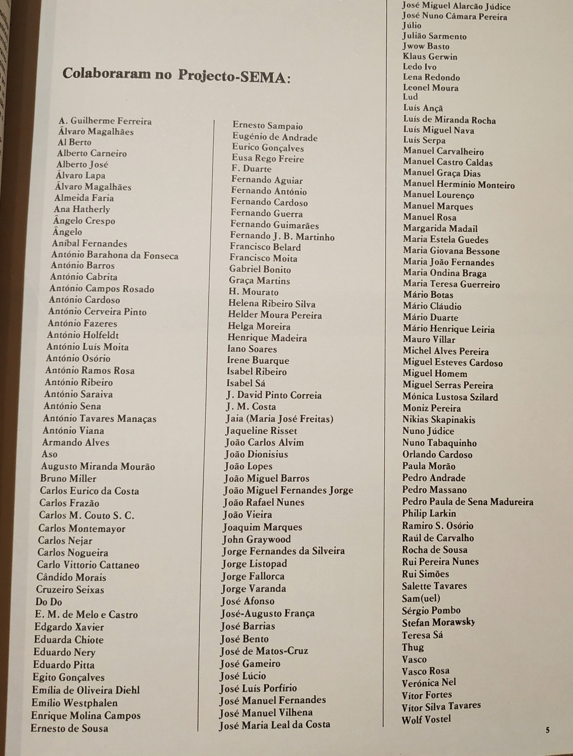 • Lista de colaboradores do Projecto-SEMA em preto sobre fundo branco