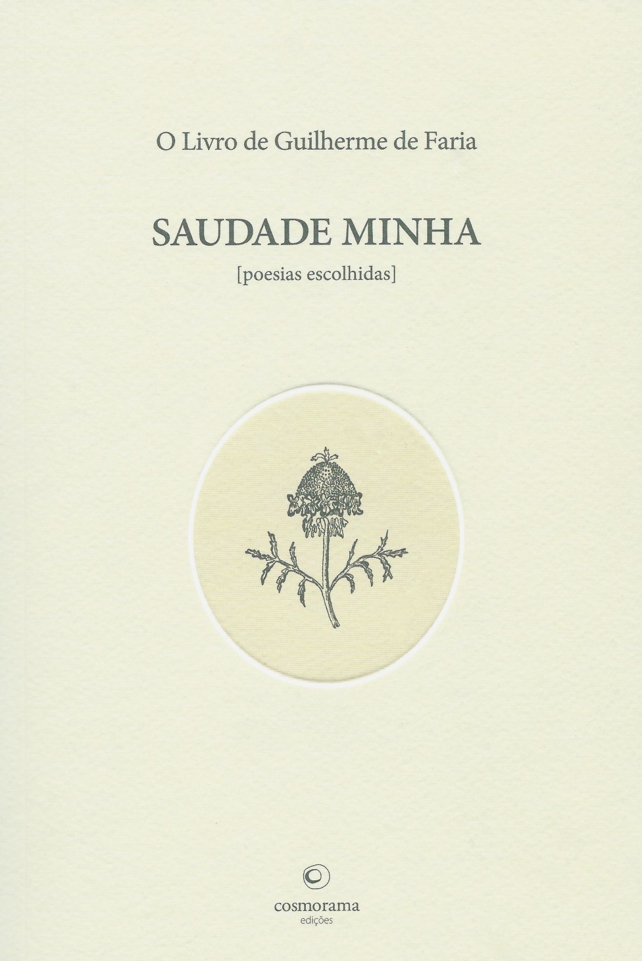 'Saudade Minha [poesias escolhidas]' reúne cem poemas de Guilherme de Faria, poeta que nasceu em Guimarães, em 1907, e suicidou-se na Boca do Inferno [Cascais], em 1929, com apenas 21 anos. Tudo o que na sua biografia é susceptível de ser relacionado com a sua idade resulta na evidência de uma precocidade impressionante: com 11 anos, ainda em Guimarães, dirigiu um pequeno jornal quinzenário; com 17 anos editou quatro livros de Teixeira de Pascoaes, num contexto em que se relacionou, com mais ou menos proximidade, com as principais figuras das letras e das artes do seu tempo; com 21 anos deixou uma obra poética singular que o integra na melhor tradição lírica e elegíaca da poesia portuguesa