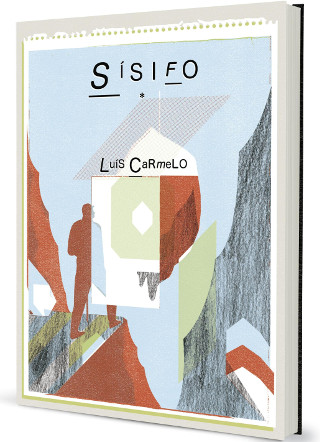 Capa de livro com ilustração abstrata e texto SÍSIFO e Luis CaRmelo