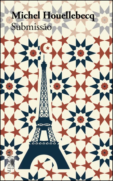 • Capa de livro 'Submissão' com padrão geométrico e Torre Eiffel