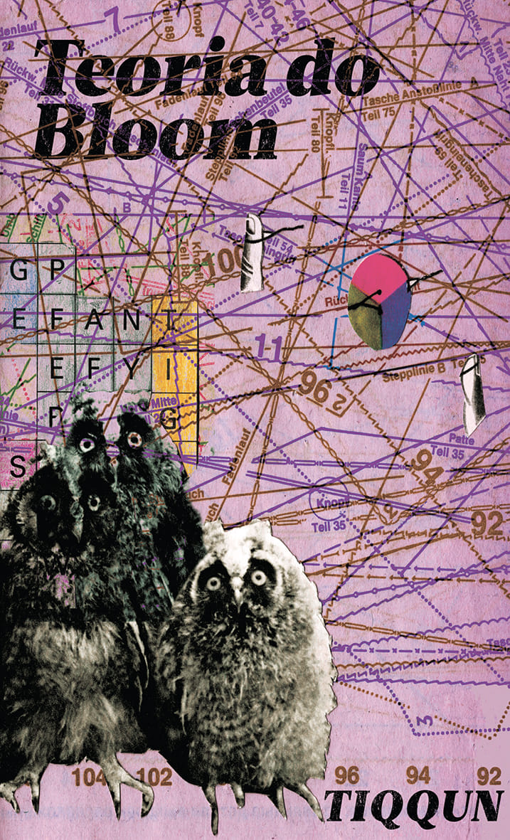 Ilustração com corujas e texto Teoria do Bloom sobre fundo complexo lilás com gráficos e números